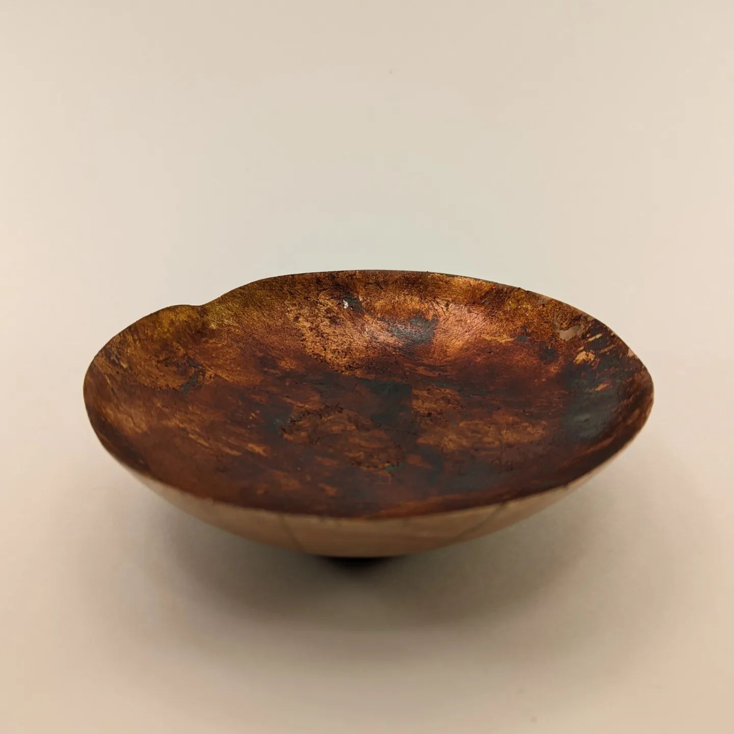 August 12, 2022 Birch bowl with chemically patinated leaf silver The wood was given to me by a friend after they cut down some birch trees at their property. Cracks were filled with brass and the inside was gilded with leaf silver that was chemically patinated. Kristoffer Nordström Read more posts by this author. Birch bowl with chemically patinated leaf silver