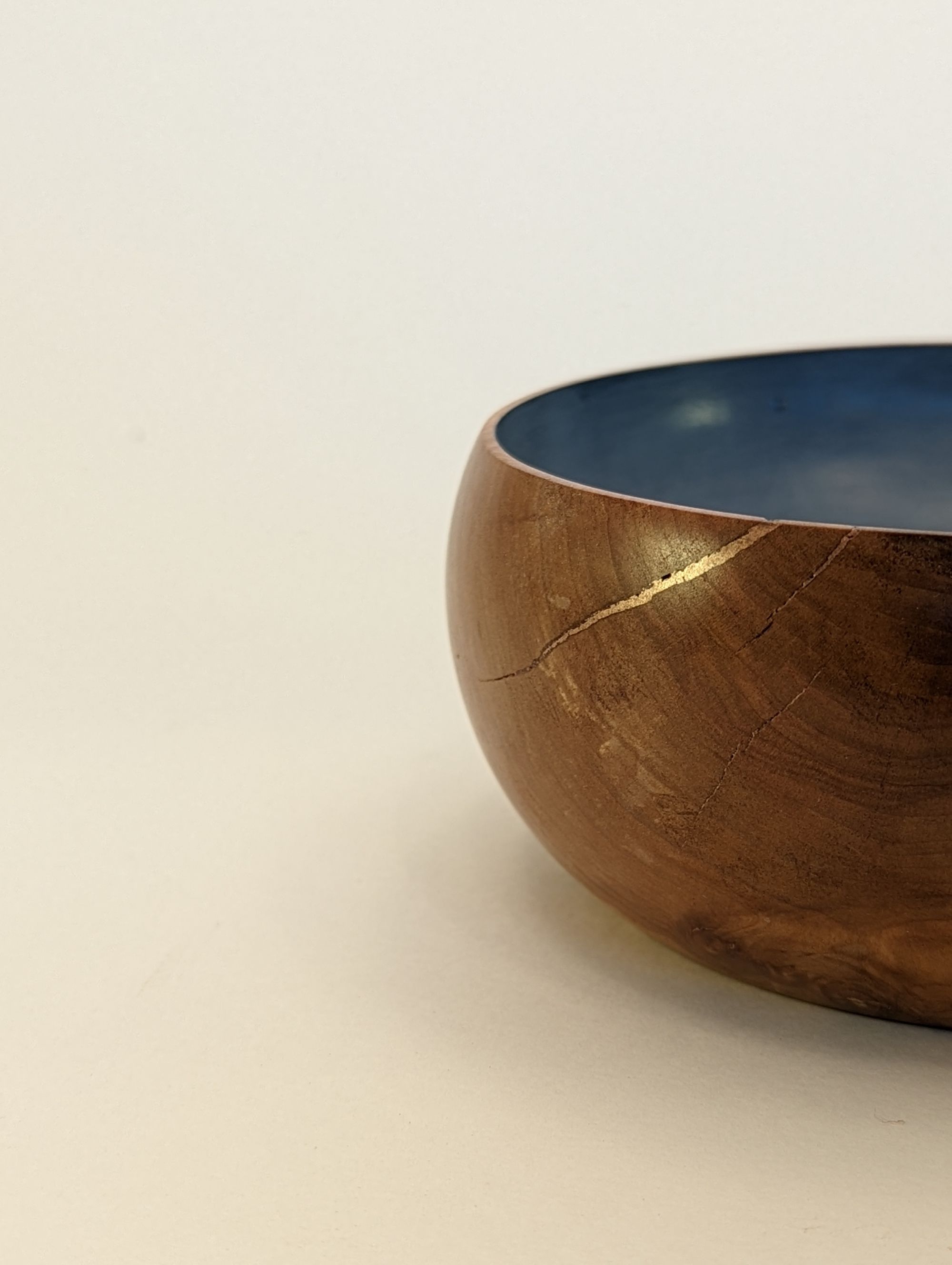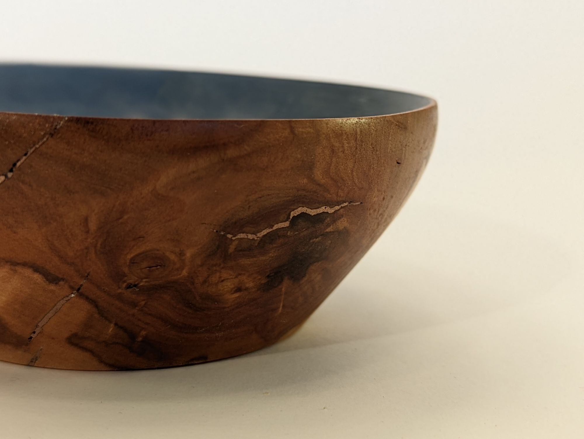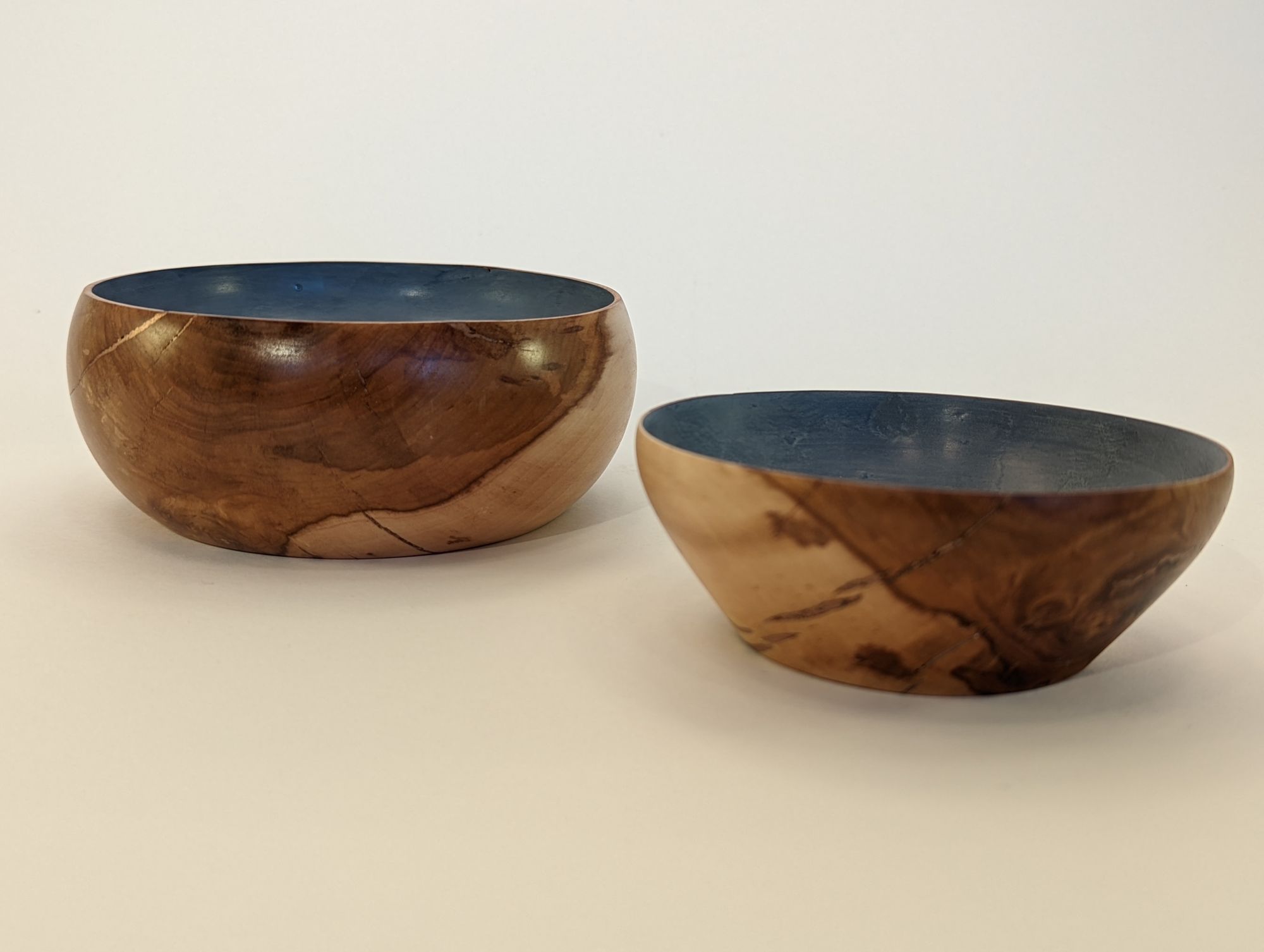 First time I've attempted (and had the patience for) making a couple of matching pieces. These bowl were made from apple tree and cracks were filled with copper inlay. Insides were then painted with chalk paint which was also a first.